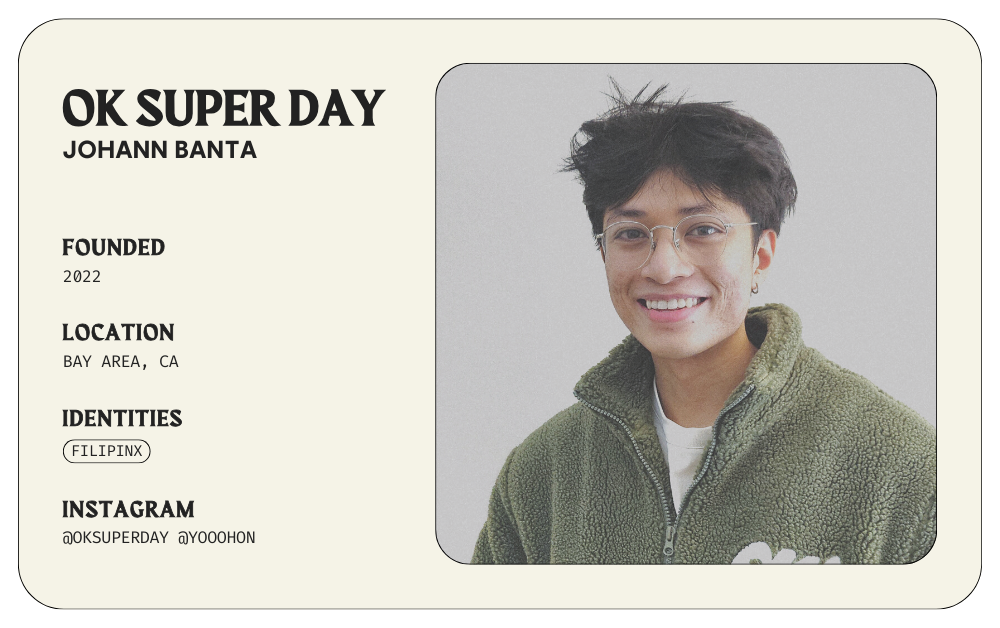 in this edition of field notes, we're talking to johann banta of OK SUPER DAY. read below to learn more about them!